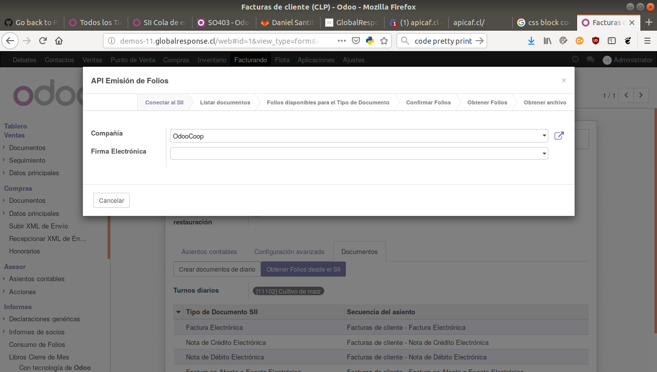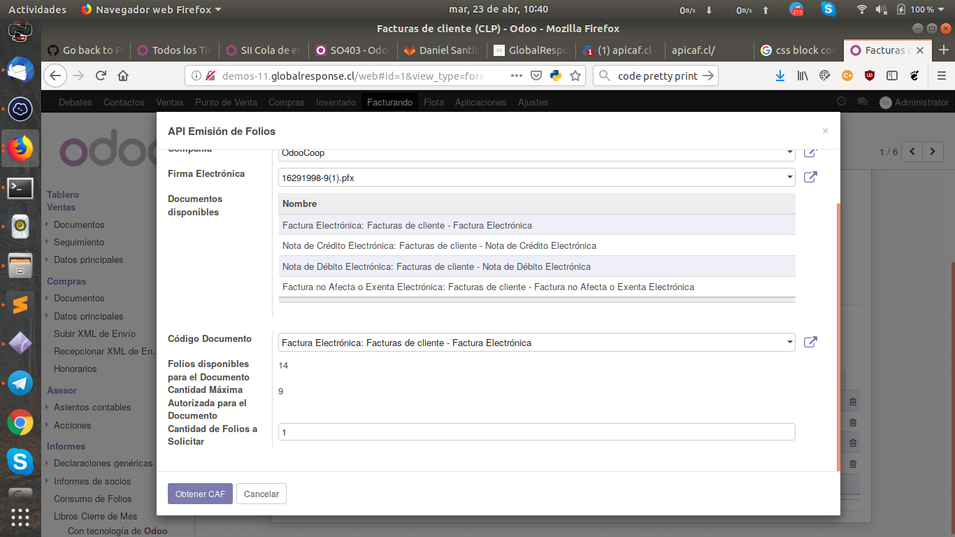 Agrego la posibilidad de emisión de CAF desde odoo, esto permitirá facilitar un poco el uso de odoo y la facturación electrónica.