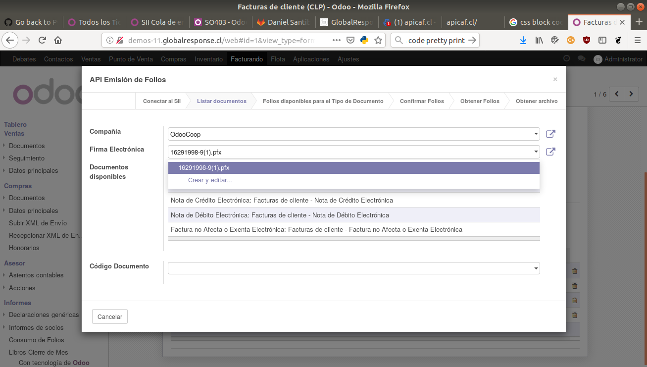 6.3.- Seleccionar firma electrónica autorizada para emitir folios